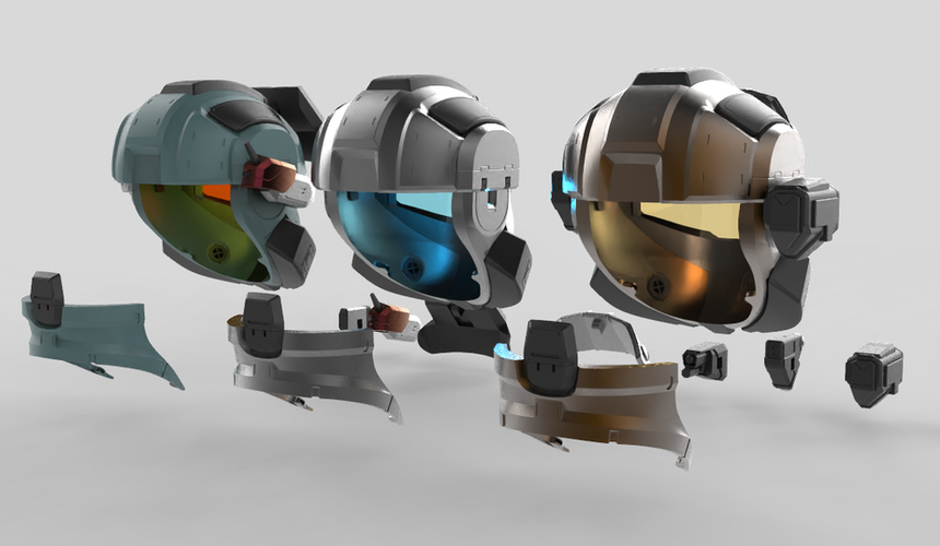 The Trailblazer helmet comes with 5 optional side helmet attachments spanning different MJOLNIR generations. All are compatible with an optional attachment rod that can easily be removed for mixing and matching different attachment compliments. CNM [5]: